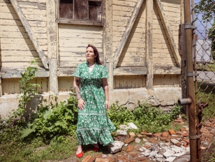 Emily Jarnot stands in front of Vaux Barn, a building she helped save.
