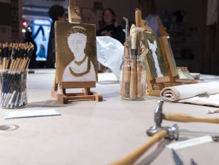 A table with art conservation materials